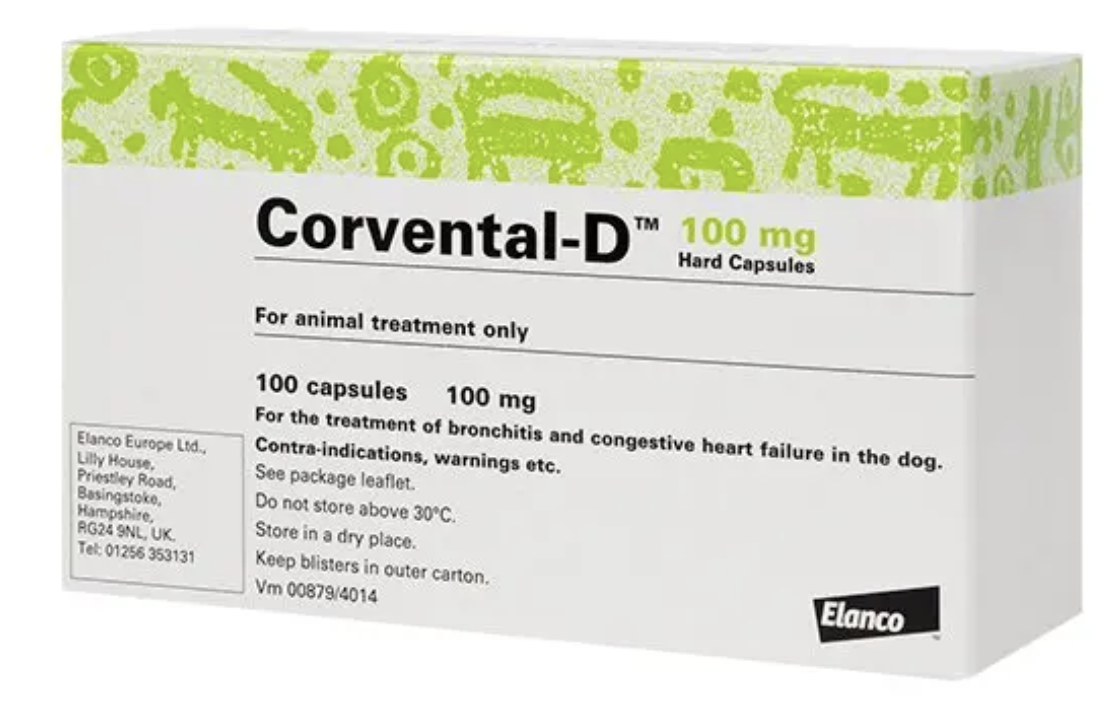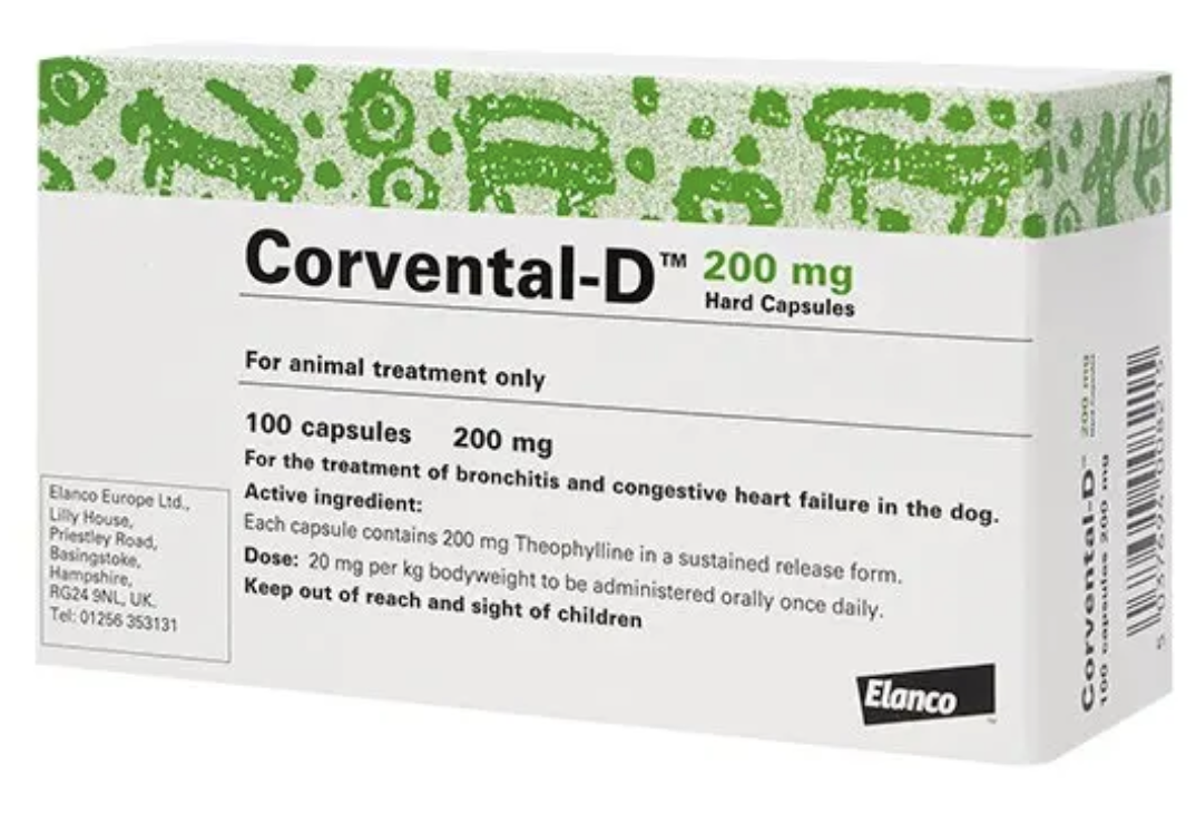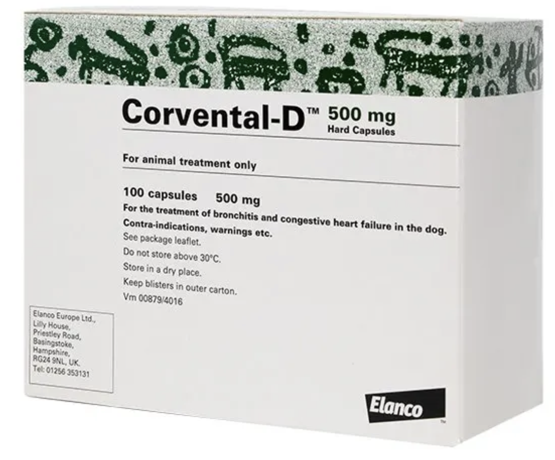 Corvental-D Capsules are indicated for the treatment of bronchitis and congestive heart failure dogs.