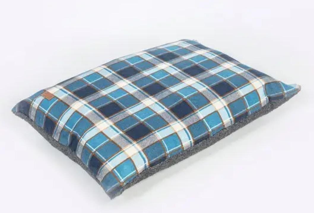 A warm and snuggly check design, with tones of blue and a highlight of mustard, printed on 100% brushed cotton for a super-soft feel. Paired with a soft dark grey Sherpa fleece, which is knitted in the UK from 100% recycled fibres.