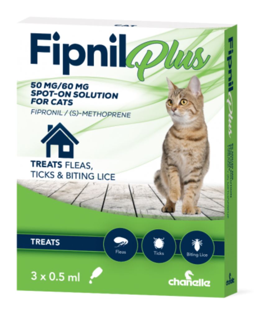 Fipnil Plus Spot-On Solution for Cats 0.5ml helps control flea infestations alone, or in association with ticks and/or biting lice. It is a Fipronil and (S)-Methoprene based solution, and will effectively kill fleas within 24 hours, and ticks and lice within 48 hours.