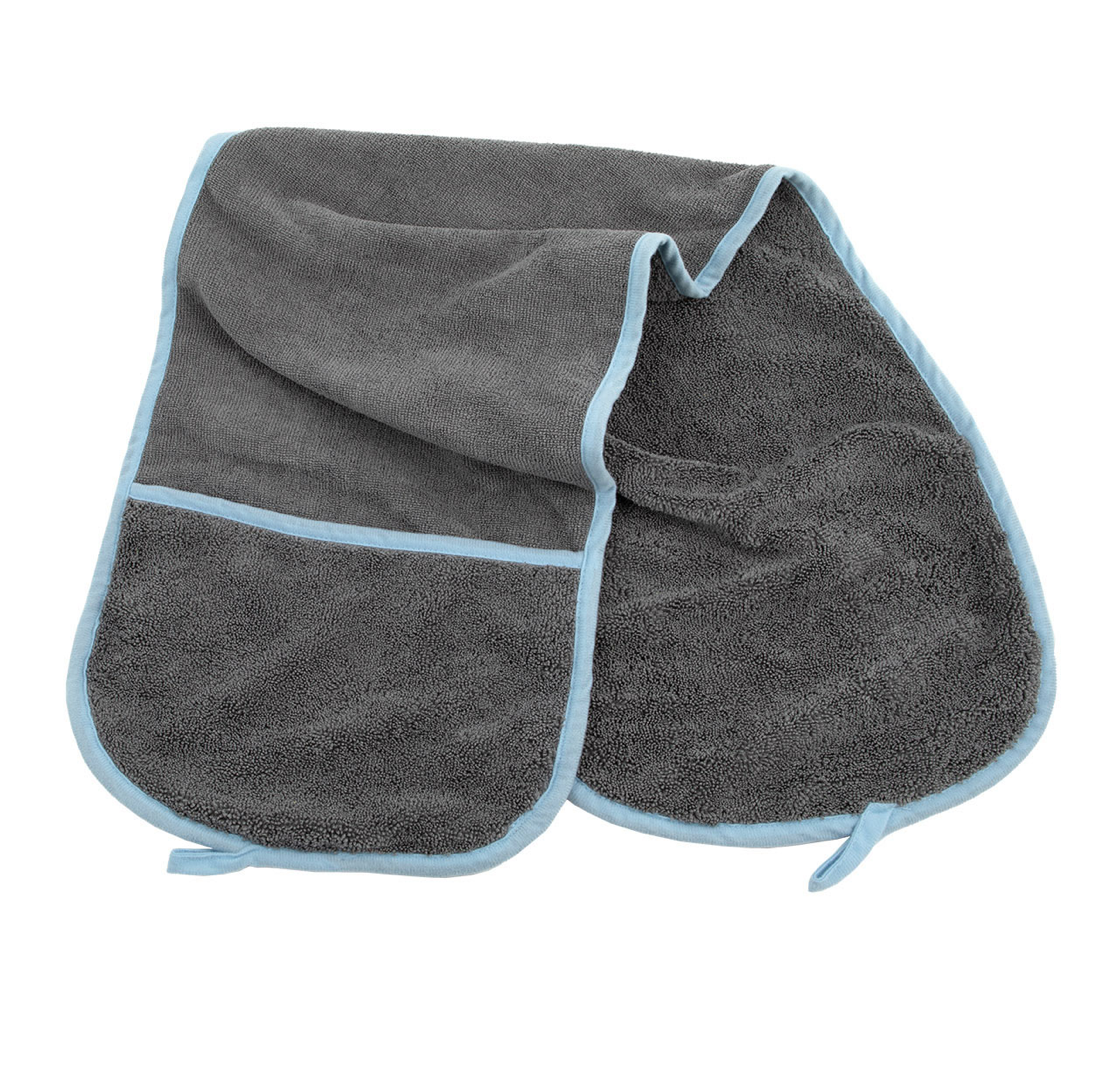 Introducing the lightweight microfibre towel, perfect for removing dirt, soaking up water and attracting any loose hair after bathtime. This highly absorbent microfibre towel comes with hand pockets for better control to allow for a quick drying process.