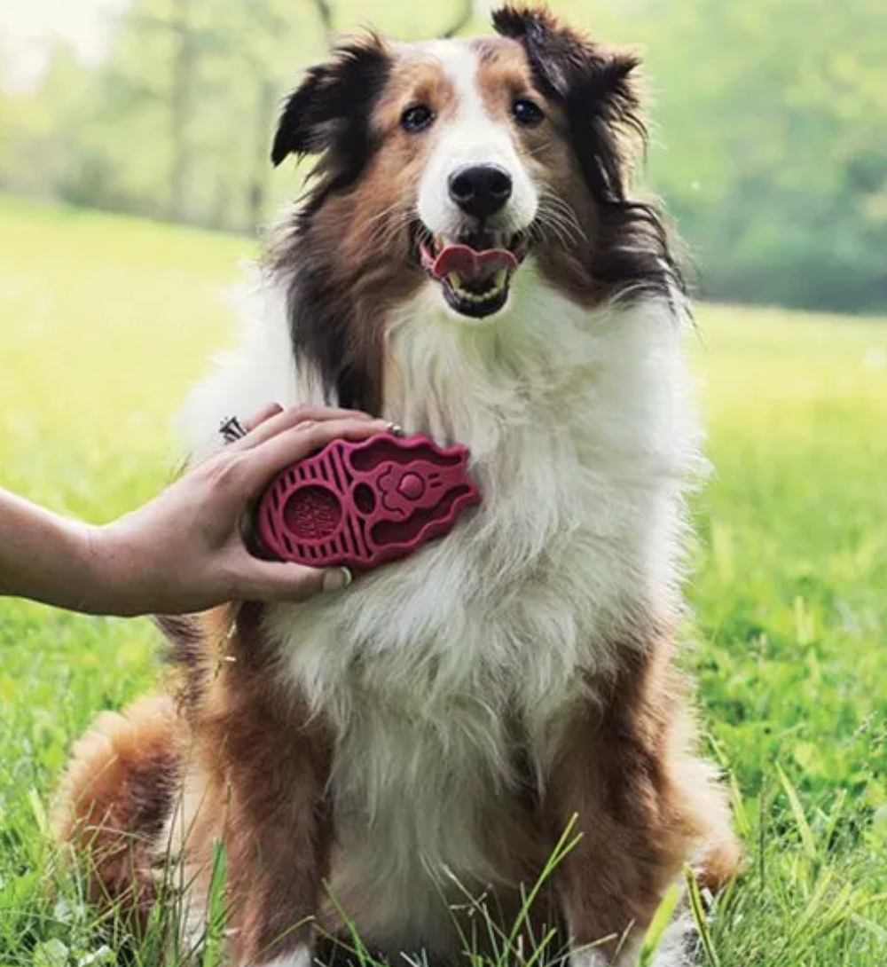 The KONG® ZoomGroomĀ® for dogs helps make it easier to get your dog clean. While shampooing use the ZoomGroomā„¢ to clean your dog’s coat. The 3/4-inch rubber fingers reach through the coat to massage the skin, stimulating capillaries and natural oil production, leading to a healthy coat for your dog.