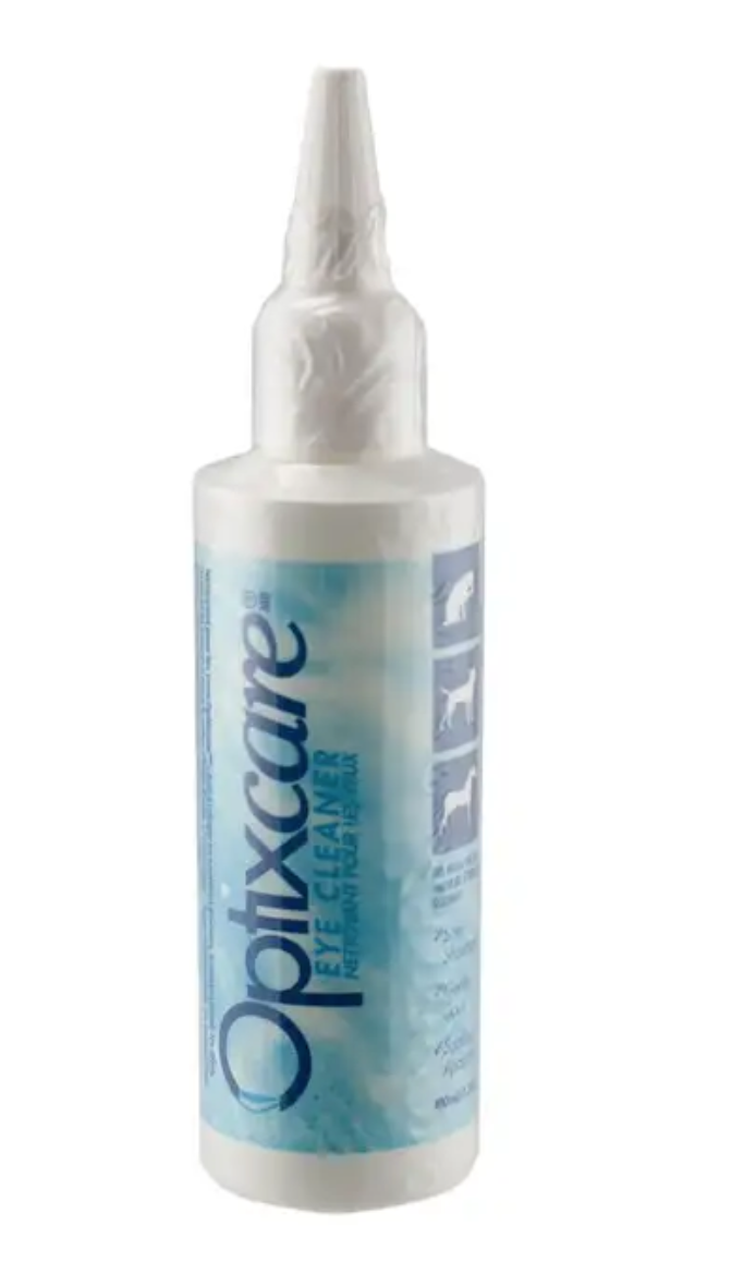 The Optixcare Eye Cleaning Solution can be used to remove debris and secretions around the eyes. It can also be used to gently and safely remove tear stains which tend to build up under the eyes of many cats and dogs.