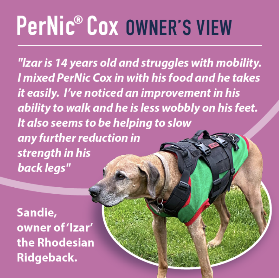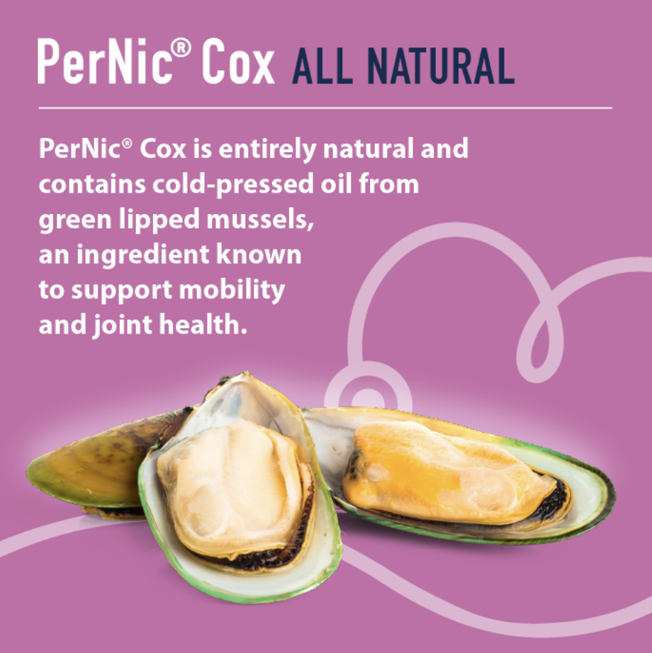 PerNic® Cox is entirely natural and contains cold-pressed oil from green lipped mussels, an ingredient known to support mobility and joint health.