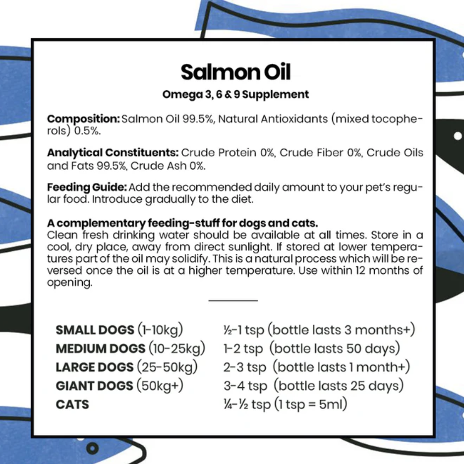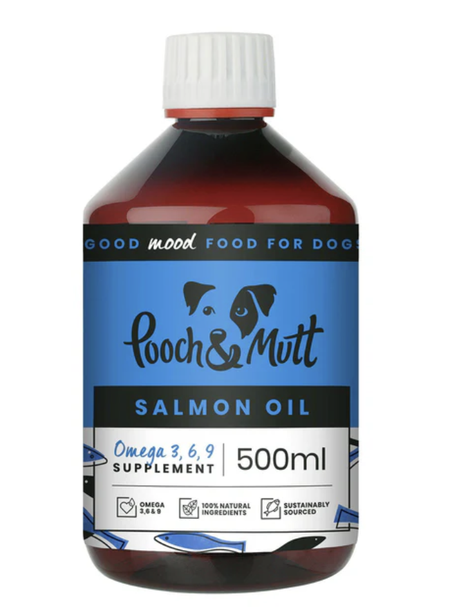 Pooch & Mutt Salmon Oil contains high concentrations of beneficial omega oils, which help support the health and integrity of the skin, coat and joints. When fed regularly as part of a balanced diet, this formula may also support the maintenance of a healthy heart, brain and immune system.