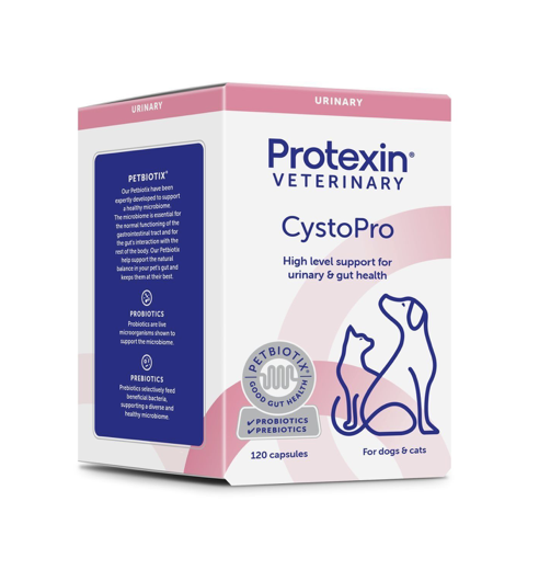 Protexin CystoPro has been developed to encourage urinary tract health. Infections may occur when bacteria attach and multiply along the urinary tract. Protexin CystoPro contains an active ingredient derived from cranberries which is in a class of antioxidants called Proanthocyanidins (PACs). CystoPro also contains probiotics, prebiotics and N-acetyl D-glucosamine. Proteixin CystoPro combines 4 innovative ingredients and is chicken flavoured to increase effectiveness and palatability.