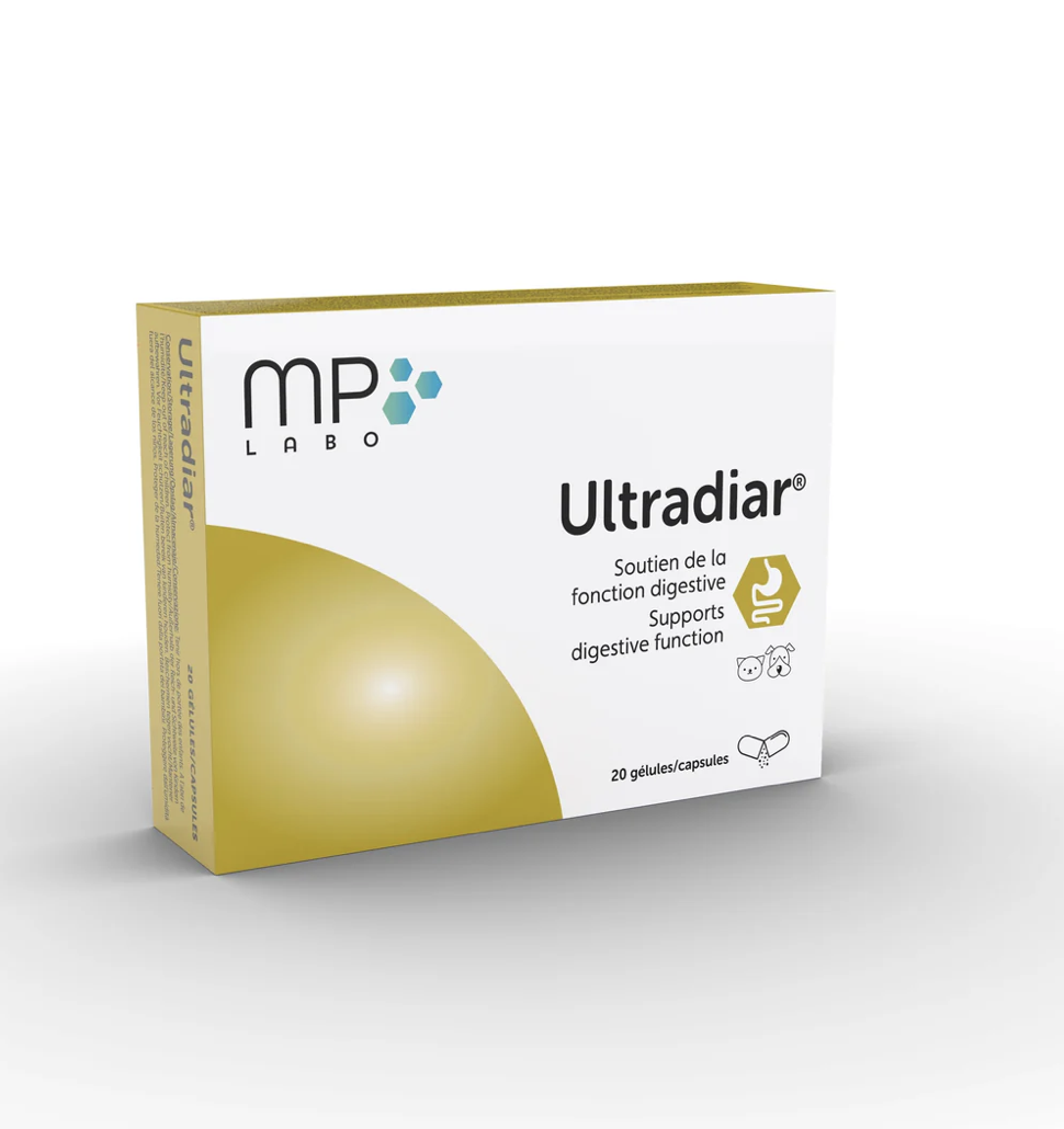 Ultradiar is an essential supplement to support digestion in dogs and cats. Thanks to its formula rich in absorbent and protective active ingredients, it helps regulate intestinal transit, rebalance flora and relieve bloating.